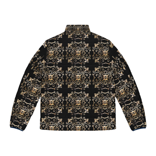Black and Gold Men's Puffer Jacket (AOP)